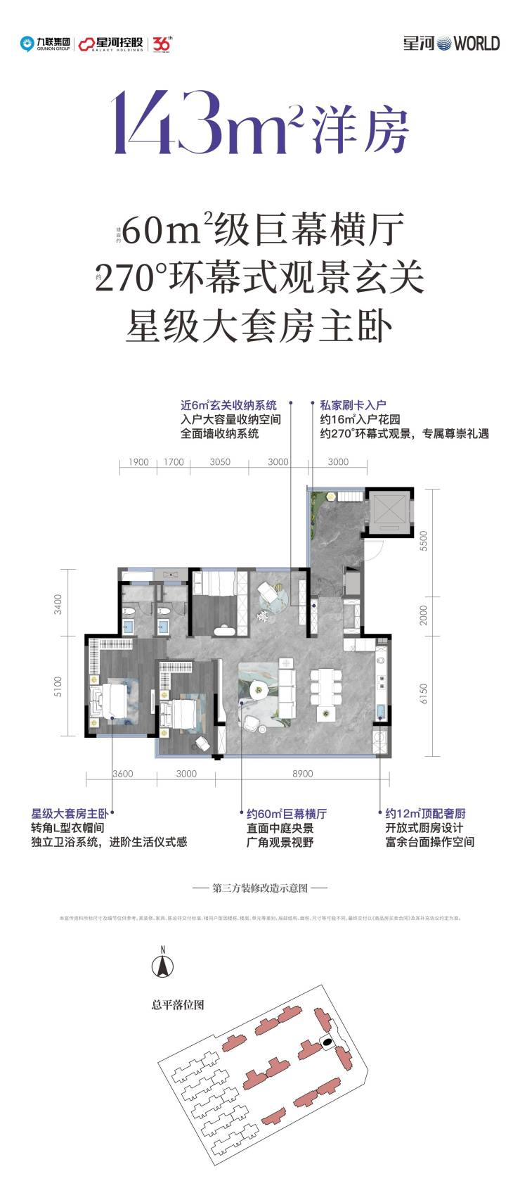 户型区间:洋房143㎡/叠墅172-198㎡(全系改善型产品)