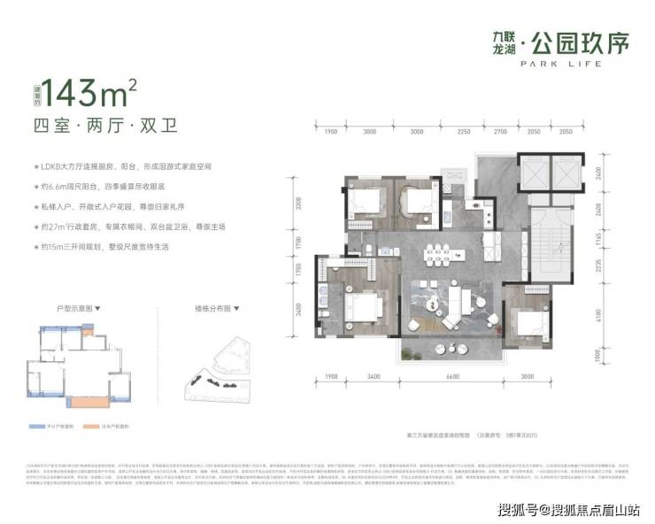 户型面积:建面:129-143㎡ 4室2厅2卫
