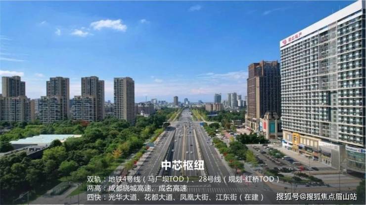 交通配套:双轨:地铁4号线(马厂坝TOD)、地铁28号线 (规划-红桥TOD);两高:成都绕城高速(四环)、成名高速四快:光华大道、花都大道、凤凰大街(成都五环)、江东街