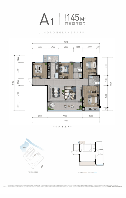 主力产品为建面约121-145㎡的改善户型,部分楼栋享有一线湖景视野。
