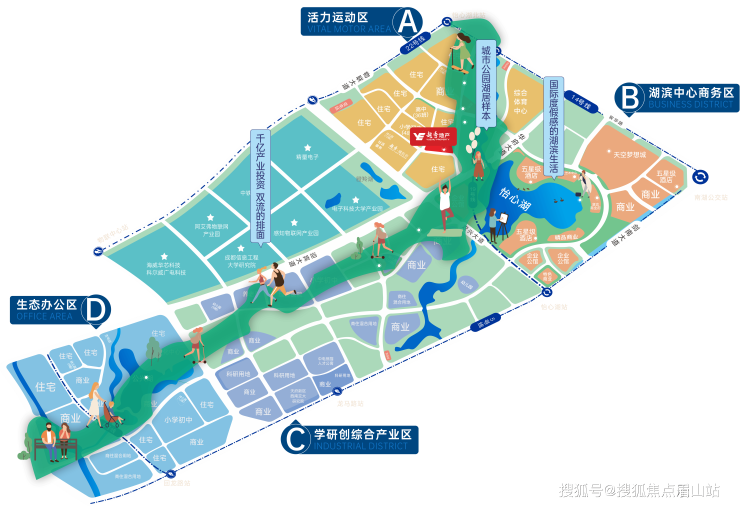 怡心湖-高密城南第 3 代湖居生活锦城湖-第一代公园湖居生活;麓湖-第二代生态湖居生活;怡心湖-第三代产城湖生活:集休闲,居住,工作,购物,医疗,教育一体化,湖边不再只能散步,更是好友相约,亲子露营,有氧健身的最佳选择。