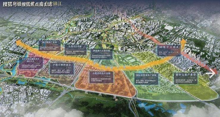 以锦江大道为纽带,将交子公园金融商务区、白鹭湾科技生态园、国际智慧康养产业园等9个智慧产业园区串珠成“链”