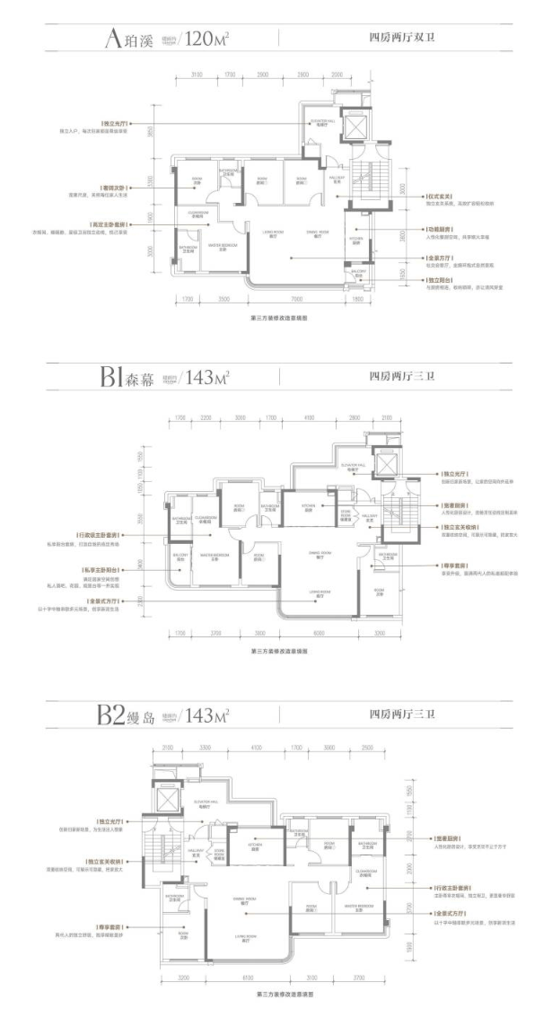项目主力产品为全系T2板式四房户型,定位清晰,专为多孩家庭、需要独立书房或与父母同住的改善客群量身打造。所有户型均采用2梯2户的纯板式设计,确保了极佳的通风采光与居住私密性。户型设计强调功能性、实用性与舒适度的统一,动静分区合理,旨在满足现代家庭多元化的生活场景需求。