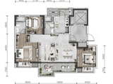 格局亮点:拥有约7.2米宽阔横厅,家庭公共活动空间奢阔。动静分区明确,尺度感与舒适度兼备,带来更具仪式感的改善居住体验。