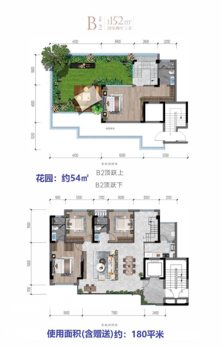 户型图152㎡顶跃四室两厅: