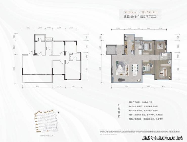 ?观湖:建面约143㎡四室两厅两卫(3-4层,1梯2户)