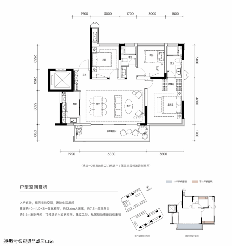 A户型 |116 ㎡三房两厅两卫亮点:1.约12.6m大面宽,全南北朝向2.约44㎡LDKG一体化横厅3.约6.85m南向景观阳台4.约3.8m主卧开间,步入式衣帽间