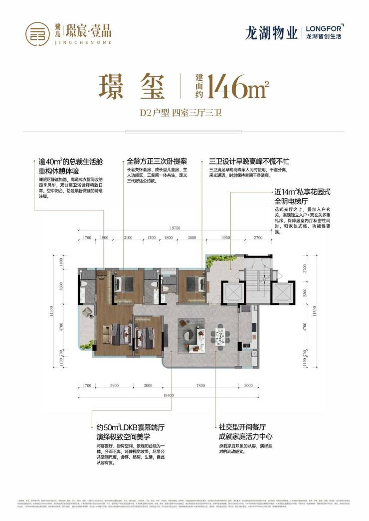 约139㎡四房三厅三卫+1百变空间--实得平层约160㎡