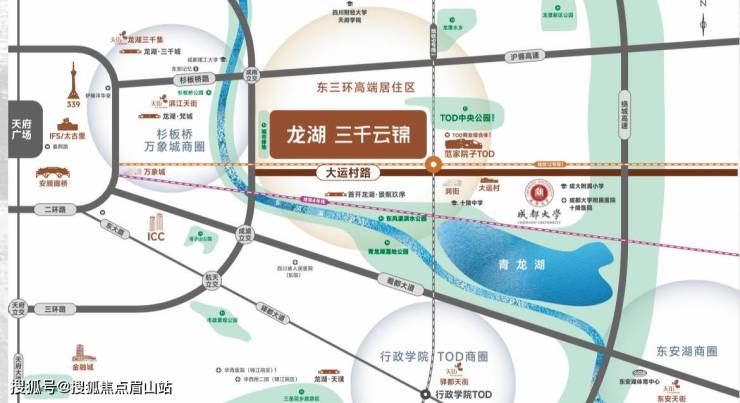 【大运——成都大运,东三环焕新升级】2023年7月第31届大运会将在成都召开。作为大运会重要配套设施-约37万方的大运村选址在东三环成都大学片区,这将刷新东三环的城市面貌,项目距离大运村直线距离仅约3公里,未来直接享受大运村功能区配套。约17.7公里大运专用通道友谊西路目前已通车,无缝连接项目与东三环。