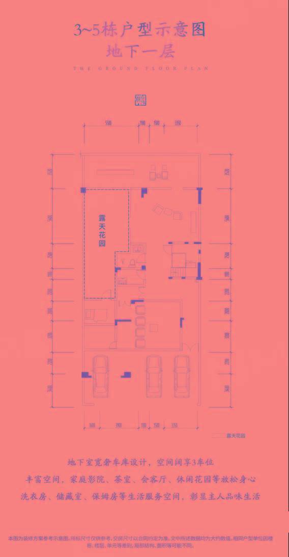地下室方面,地下一层的预留车位,足以停下三辆车,这一层还包含一个近40㎡的露天花园。夹层有约30㎡的私人X空间,可根据业主喜好打造茶室、瑜伽室、健身房等。