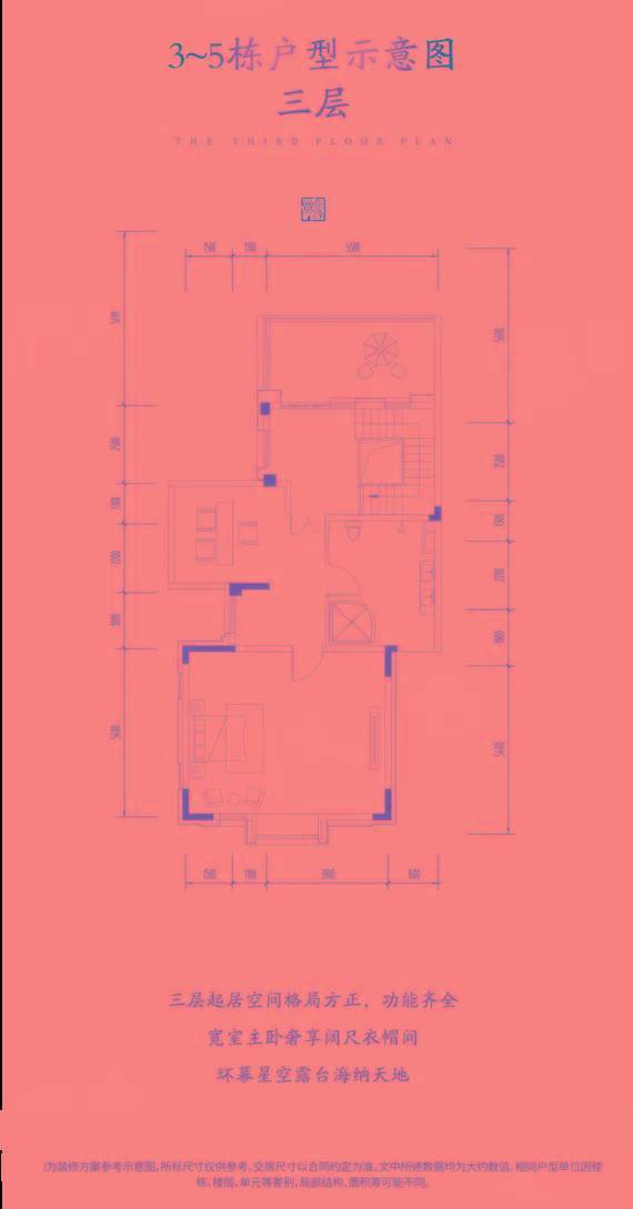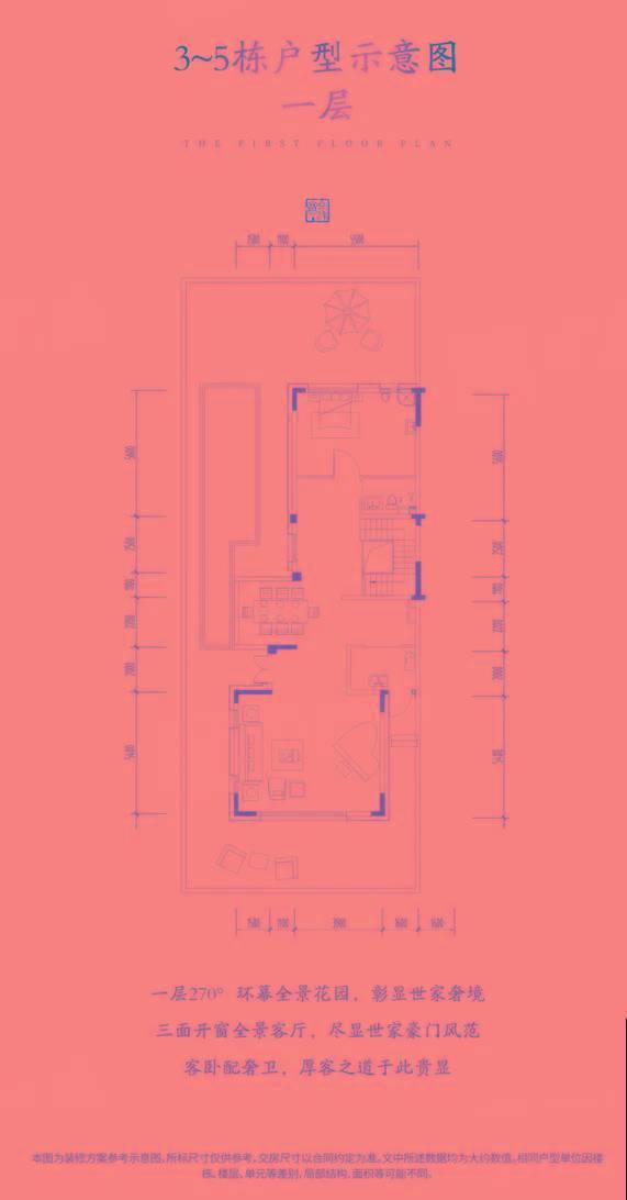 一层拥有270度环幕全景花园,仅客厅开间就达到6.5米,老人房进深也达到5.5米,但餐厅空间较为压抑。二层包含全挑高赠送空间,需要业主自行搭建。三层为6.5米开间主卧,但开窗面偏小,该层还有星空露台。
