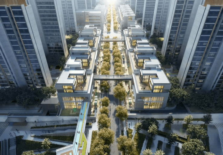 在项目的整体布局上,万科高线公园住宅外围基本被公园包围,社区则像“藏”在公园里;南侧的写字楼、高线客厅等商业配套迎接行政学院TOD地铁站的人流;沿楠木街分布的商业街和中心位置的高线邻里中心、LINK剧场则将合力营造有“烟火气”的社区,并解决业主的日常商业购物需求。