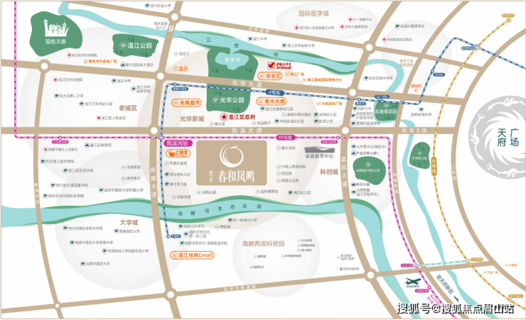 2、三轴一高快捷路网,高效出行•无界全城邻凤溪大道,光华8线,光华大道,和成温邛高速联通,全城皆能快速直抵。