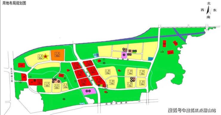 区域控规图:(黄色为住宅用地,绿色为公园用地,红色为商业用地)