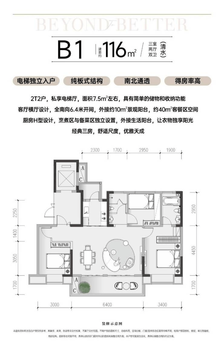 电梯独立入户、纯板式结构、南北通透、得房率高