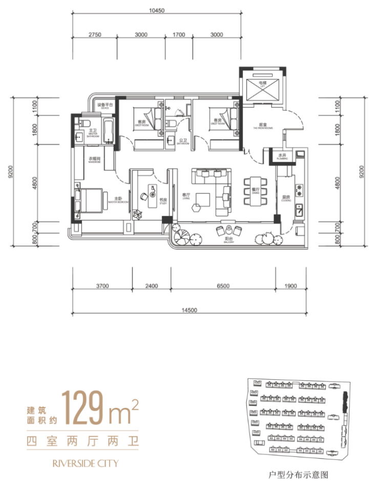 面积段:建面约174-325㎡江岸雅奢墅境 建面约129-159㎡天际阔景平层