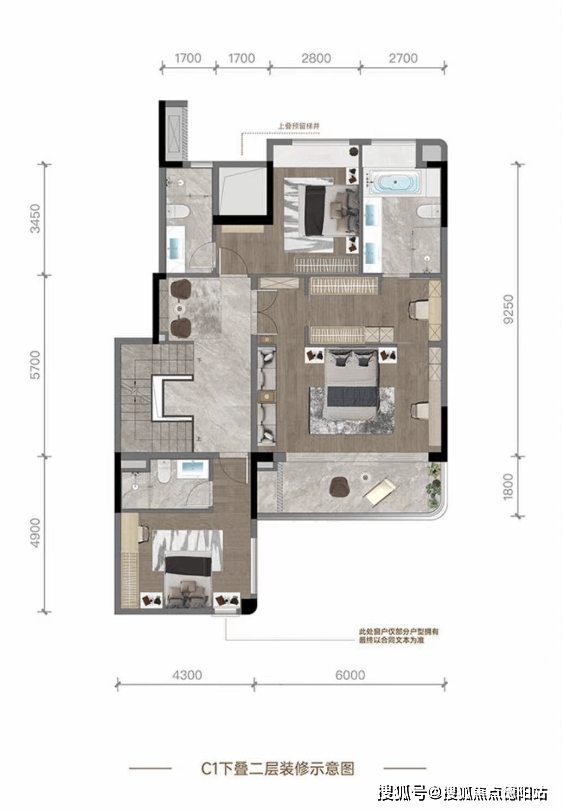 C1户型|叠拼|建面约238㎡| 四室两厅四卫