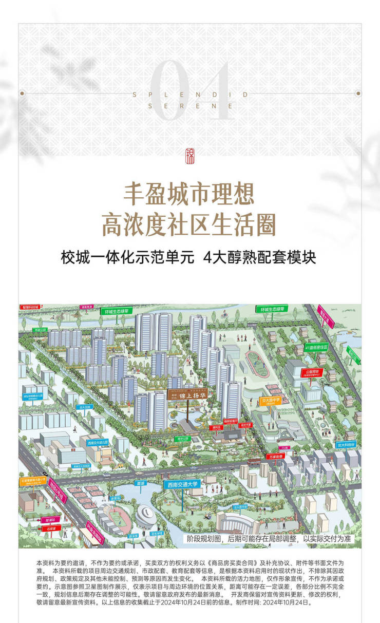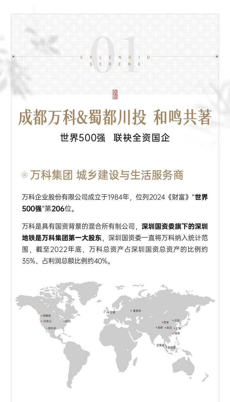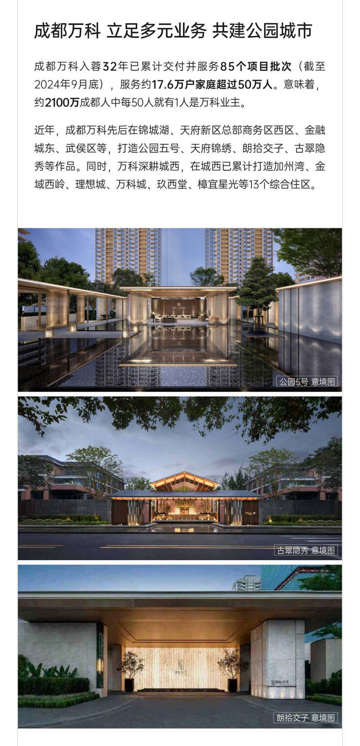 成都万科2024年新规1号作品 城西置业必看首开在即,火热冻资中🔥🏠项目参数❤开发商:成都万科&蜀都川投和鸣共筑❤物业类型:纯住宅❤项目占地:78亩 ❤产权年限:70年❤交房时间:预计2026年12月❤总户数:1233户❤楼栋总数:15栋❤在售楼栋:10# 14# 16#❤在售户型:98-116-128-143㎡❤均 价:13800-17000元/㎡❤总 价:135-240万 ❤梯户比:2T2/2T4❤建筑面积:213363㎡❤容积率:2.95❤公摊:10%-15%❤层高:3.05-3.1❤交付标准:精装修❤绿化率:30%❤停车位:待定❤物业公司:万科物业❤物业费:预计2.9元/㎡/月❤产品规划:🌈洋房:143㎡奢雅洋房(1梯1户、双中庭楼王)楼栋分布:10#🌈高层:98-116-128㎡阔景高层(低区看公园、高区可看湖)楼栋分布:14#16#
