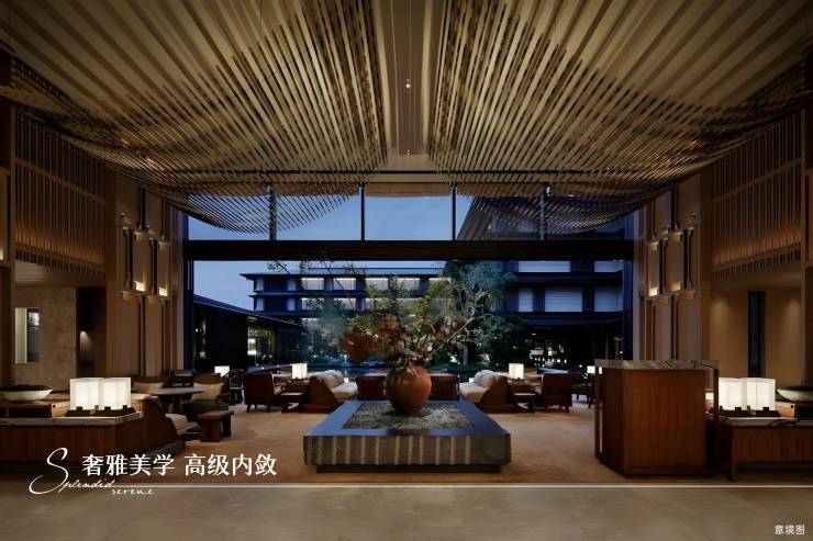 万科「锦」系首落西南——锦上扬华【产品观1——锦上美学】设计对标全球星级酒店作品京都三井酒店运用黑、金、木为主色系,甄选高级主建材,将东方隐奢饰品作为点缀,以蜀锦符号为引,贯穿项目设计