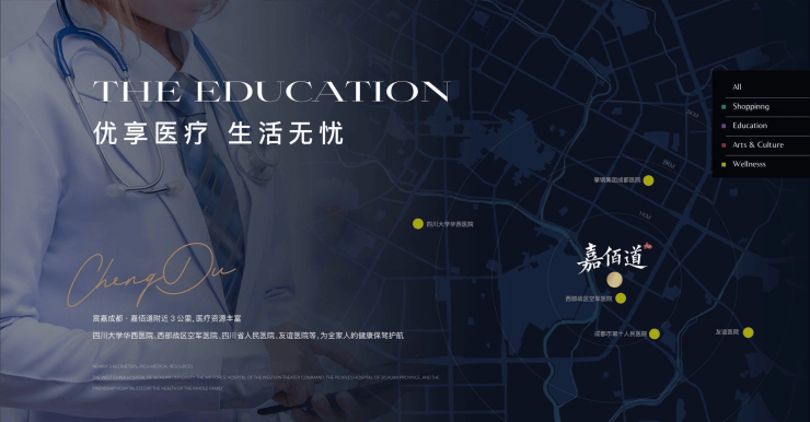 华西医院、市二医院、市第七人民医院、空军医院等权威医院坐落,加之10余所中小型私立医疗机构散布,满足当代人士健康需求