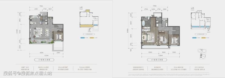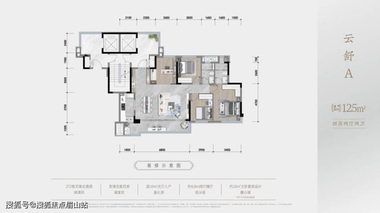 户型图2 梯 2 户 电梯入户 270 度光厅建面约125-143㎡套四