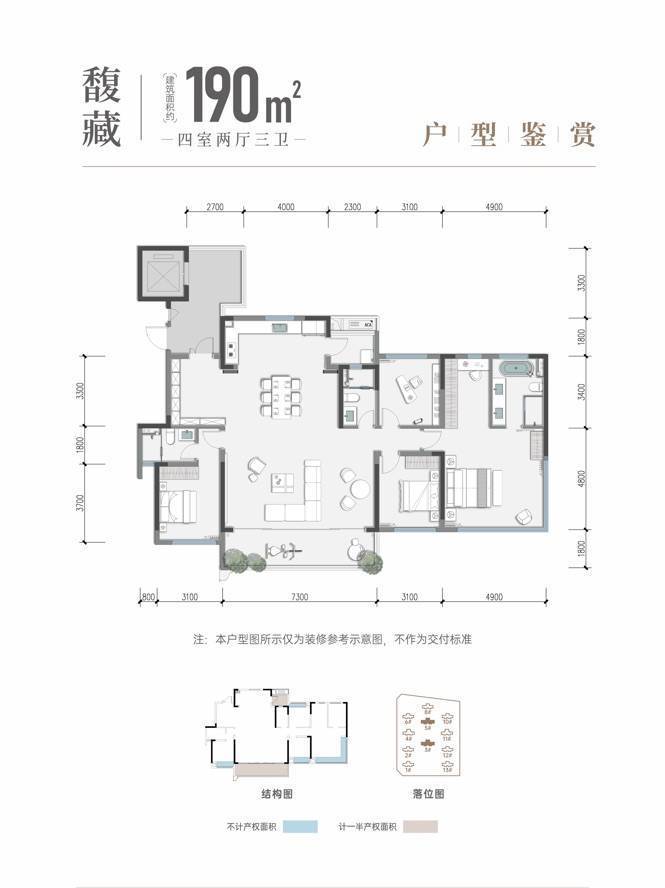 真正的艺术臻境,舍得将更多土地让渡给自然。中旅·青羊馥棠拥有区域内目前最低约1.8容积率,约44亩土地,住宅仅规划11栋建筑,依地形优势,所有楼栋呈正南北朝向分布,全T2规划,创新打造区域内首屈一指全端户户型,确保户户主卧私享270°环幕视野。约27-58米的超宽楼距,足不出户瞰揽多层级中轴景观系统,每一面都能感受不一样的风景。更高端的圈层氛围,更纯粹的邻里社交,敬献挚爱青羊的了22户家庭。