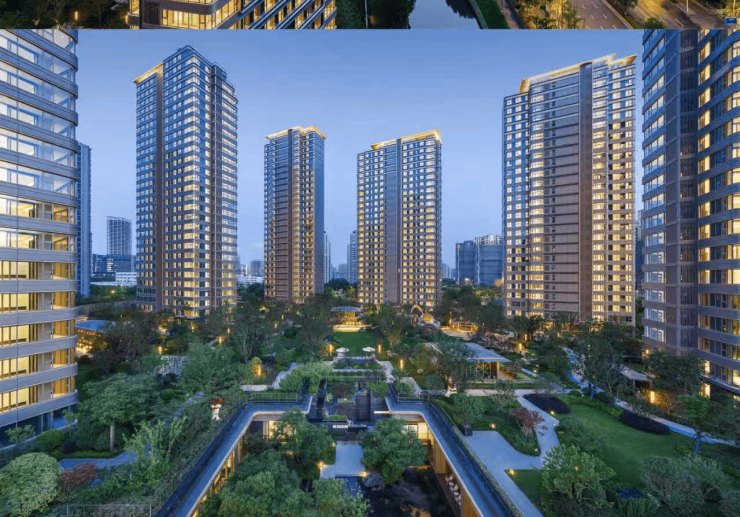 物业由中能建生活服务公司提供,物业费4.8 元 /m²。项目采用2 梯 2 户纯板式设计,独立入户,保证了居住的私密性与舒适度。目前在售产品为建面约 143-175-199㎡精装四房,单价3.4-3.8 万,总价约470-780 万,得房率约110%,层高3.1 米,装修标准分别为3500 元 /㎡(143 户型)和4800 元 /㎡(175/199 户型)。