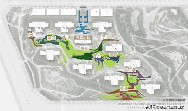 新奢艺境 台地峰景社区 让川西景致嵌入生活园区景观中轴,指向人字绿廊与西岭雪山,整体以“川西秘境”为出发点,对标“雪山下的公园城市”3D人文生态模板,以园区内外自然高差形成多元场景表达,打造双环两廊、川西十景的园林景致,同时将架空层泛会所与景观体系紧密相融,打造自然会客厅,让川西景致嵌入生活,让度假成为日常。