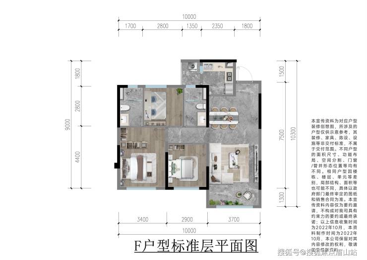 ?和樾:建面约98㎡三室两厅两卫(北地块15-18F小高层,2T4)