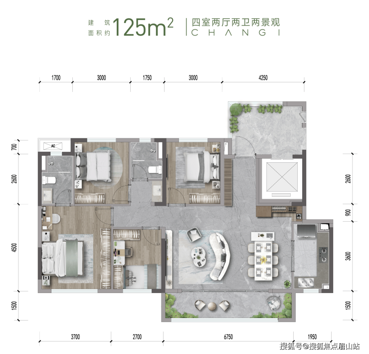 【125㎡星朗-四室两厅两卫两景观】中庭楼王,城市天际视野,私密尊享户型两梯两户,独立仪式空间入户南北朝向,约15米大面宽,南向5重境奢侈观感,约6.75m横厅景观面约21㎡奢阔主卧,空间小家化