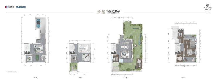规划布局有6栋190-330m²的庭院洋房以及3栋面积260-269m²的前湾上下叠院,叠拼与门口的市政道路高差在 2.4m,最高可达3m。