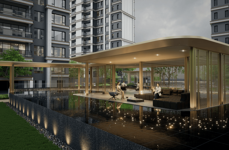 ▋ 约1000㎡环绕式下沉生活会所下沉生活会所打造灵动静面水景,景观秘境里,千年东方造园哲思化作“守望乌桕"、"一池三山"、"四水归堂"的雅集景象。视觉大开大合同时又富有变化,结合高差营造的水帘瀑布落入水池中,飞瀑叠泉,归家即度假,同时会所具备健身、会客、品茗、儿童游乐等功能,为峯层人士定制的高阶生活方式。