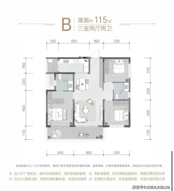 联通式阔尺8m阳台,迎接更多清风阳光·主卧套房设计·户型方正,利用率高