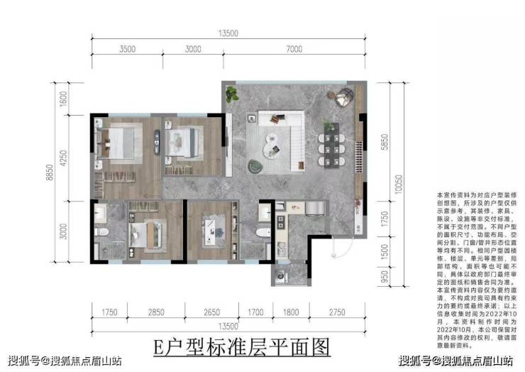 ?核心亮点:1⃣:4房功能齐备、满足二孩家庭需求。2⃣:约6.8米极幕观景客厅,惬意居家。3⃣:L型厨房配置生活阳台,从容居家。4⃣:干湿分离、洗漱台分离,科学分配时间与空间。5⃣:套房式主卧设计,享受奢华进阶人生。