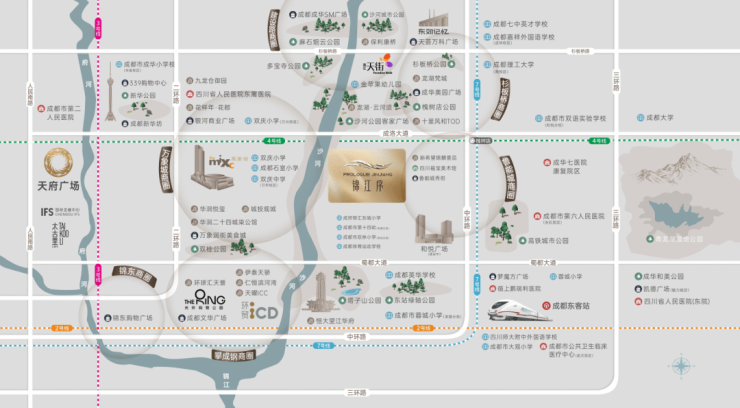 成都二环是主城千年文脉汇聚之地;城市发展的肇始之境;焕新升级的核心片区;高端人居的璀璨聚集地。聚集了万象城/东郊记忆/339/太古里/IFS/九眼桥等地标,托举二环板块价值高度。