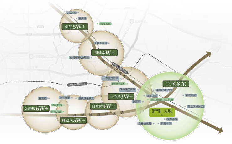 天琅择址于三圣乡东,依托轴心优势和地铁13号线,与锦宸院等众多顶壕一站联通,共享城市高端配套,启幕3KM超配生活圈