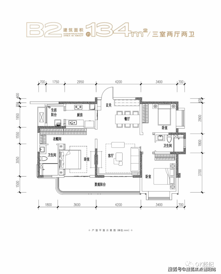 约4.2米宽境尺度客厅,贯连约7.8米南向景观阳台