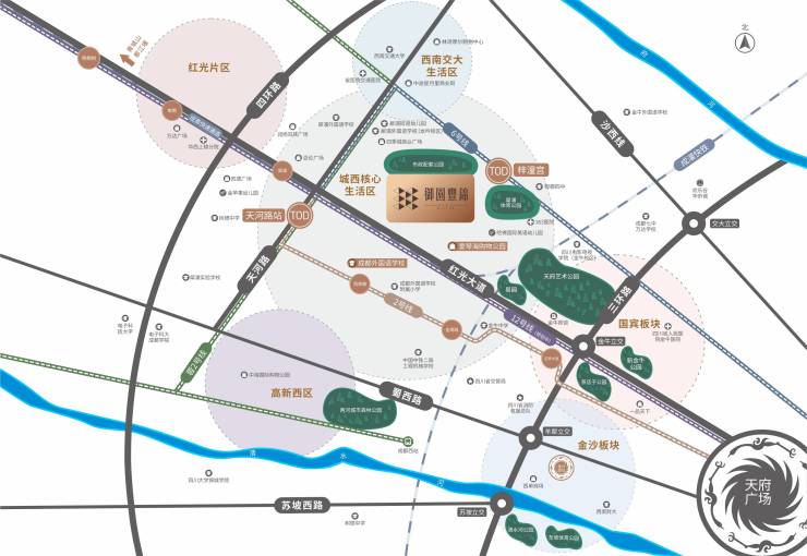 御园丰锦的区位优势直击刚需痛点 —— 占位成都 “西贵” 文脉核心,坐落于郫都区犀浦镇天河路 / 梓潼宫双地铁 TOD 辐射圈,属于成熟生活居住区,既享烟火气又拥便捷交通。