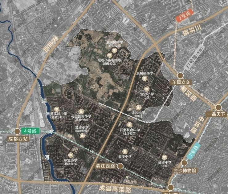 ✅教育配套:成都第六幼儿园、实验小学附属幼儿园金沙小学、泡桐树中学、石室联中、青羊实验中学