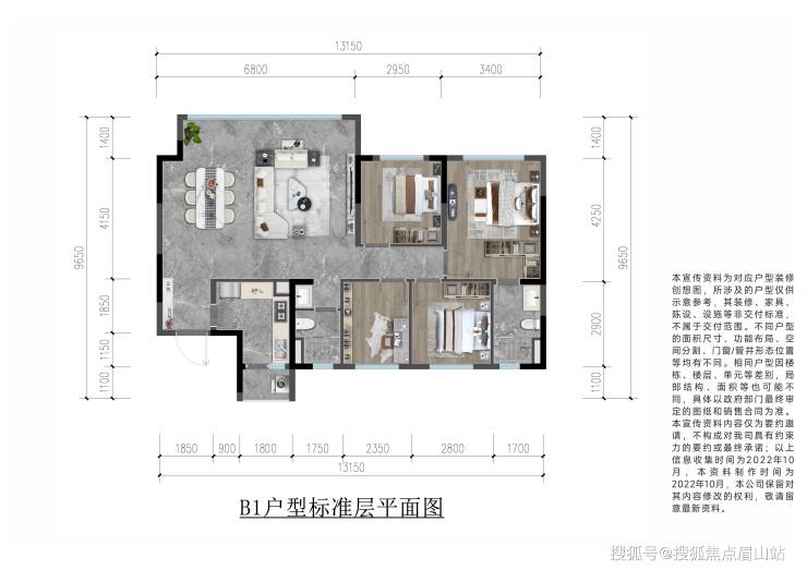 ?核心亮点:1⃣:4房功能齐备、满足二孩家庭需求。2⃣:约6.8米极幕观景客厅,惬意居家。3⃣:L型厨房配置生活阳台,从容居家。4⃣:干湿分离、洗漱台分离,科学分配时间与空间。5⃣:套房式主卧设计,享受奢华进阶人生。