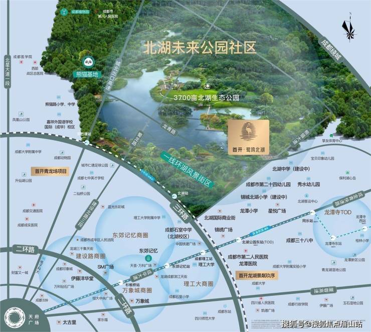 位于成都的东北方向,是主城区幅员面积最大区,也是中优、东进的重点承接区域。【东三环北湖未来公园社区】主城不可复制的的生态资源,北湖公园占地3700亩,是成都市主城区最大的人工湖泊和最美的生态湖区,同时也是首批公园社区的试点区,凭借大熊猫和北湖生态两大产业双ip,规划了“一湾一园、三港五区”的空间布局,未来也会形成新北湖商业圈。