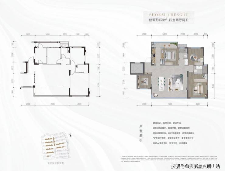 户型解析一梯两户、湖景洋房、纯板式结构、南北通透