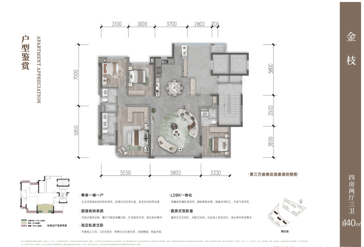 项目提供建面约140㎡、160㎡、175㎡的全系精装改善户型,并以极高的得房率为共同特征。户型设计精准切入家庭全生命周期的成长需求,在功能布局、空间尺度与场景营造上,均体现出面向高端改善客群的深度考量。