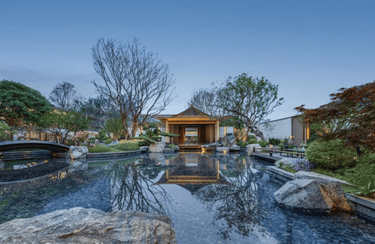 承袭建发"紫宸系"营造技艺,以"一轴三堂五院"礼序格局,创新融入宋代书画手卷的横向美学。檀木手卷式大门、蓝花楹景观大道等细节,再现"穿林踏影过,花雨落肩头"的宋式意境。