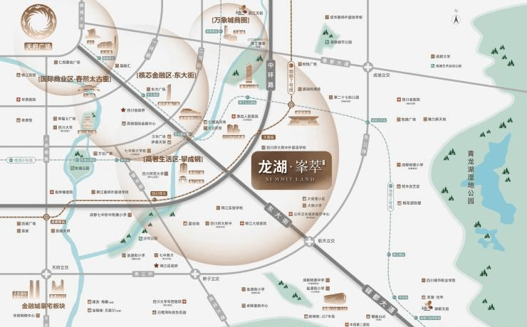 汇聚伊泰天骄、锦天府、天誉、仁恒滨河湾、建发央玺等豪宅标杆,光环购物公园、环贸ICD、COSMO天廊、华宇广场、东门市井等商业地标,成都豪宅区开创者、高起点国际住区