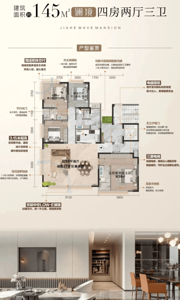 结合高达115%的得房率和3.15米层高,室内空间感远超同类产品,功能上可轻松布局为三房或四房,满足从首改到再改家庭的全周期需求。全屋精装交付的配置,让业主免去装修烦恼,轻松开启高品质的改善生活。