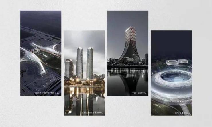 中国·欧洲中心 | 成都天府国际金融中心 | 成都远洋太古里 | 仁恒置地广场 | 成都天府国际机场航站区 | 四川省图书馆 | 东安湖体育中心 |麓湖生态城等。