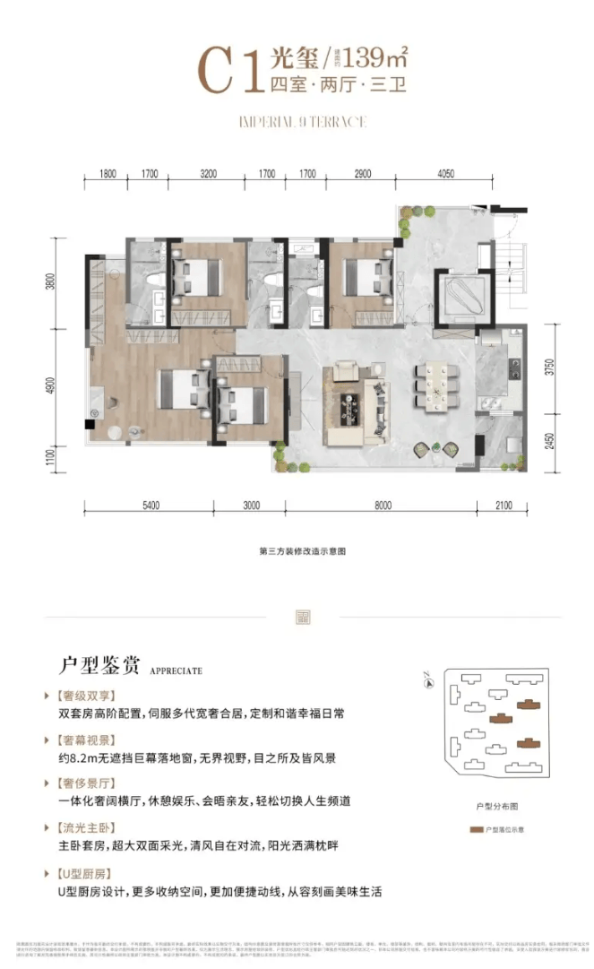项目产品线丰富,涵盖建面约118㎡、125㎡、139㎡的平层,以及约141㎡、150㎡、176㎡的跃层产品。这种多元化的面积段与产品形态设计,旨在精准匹配从首改到再改等不同阶段家庭的个性化居住需求。