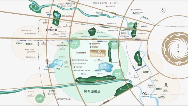 优质教育:七中菁才(2025年交付)、川师附属实验学校(2024年交付)、新世纪外国语学校(成都前十名校)及社区幼儿园