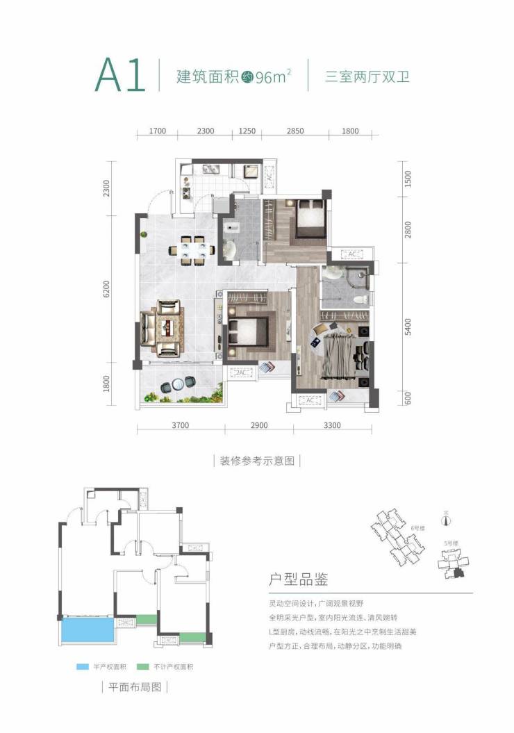 建筑面积约96㎡ 三室两厅两卫
